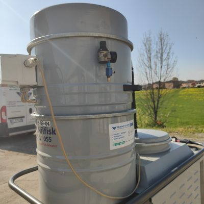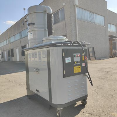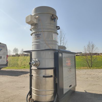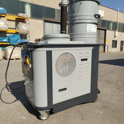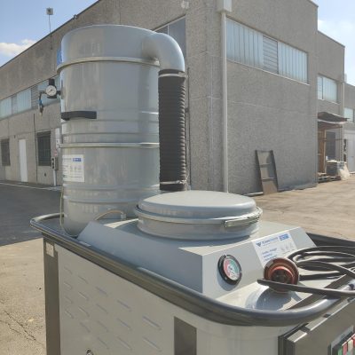 L’aspiratore è dotato di un potente turbina da 5,5 Kw e della pulizia pneumatica dei filtri a cartuccia.