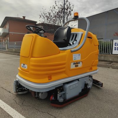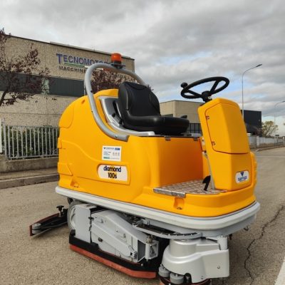 DIAMOND 100S è una robusta lavasciuga pavimenti industriale, in grado di spazzare, lavare ed asciugare il pavimento contemporaneamente.