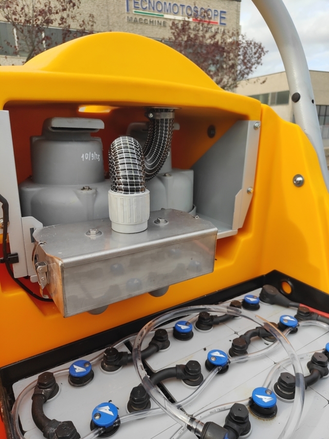 La macchina lavora con tensione 36V, il pacco batterie ha una capacità 450 Ah(5), garantendo una autonomia di lavoro di oltre 5 ore.